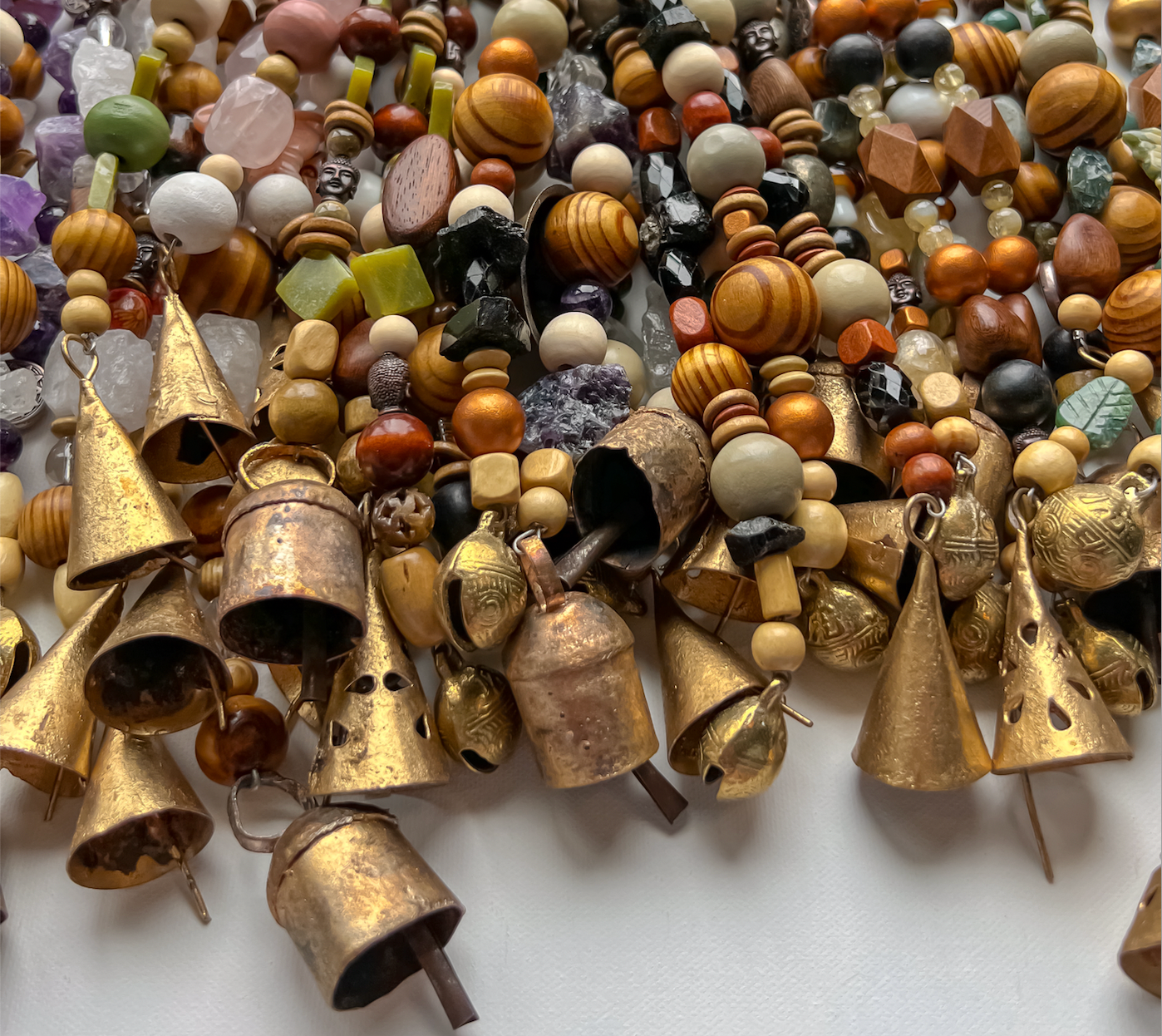 Where is the best place to hang my bells? We recommend hanging your bells on an inward-swinging door. This prevents the crystal & wood beads along with the metal bell from being crushed between the door & the frame. However, they can still be displayed beautifully in any space on walls, doorknobs, entryways, windows, porches & gardens. Hang them anywhere you wish to invite protection, balance, & gentle sound. Hanging them from the front door welcomes positive energy while clearing stagnant energy every passing through. Trust your intuition! The right place is wherever their energy feels at home.
