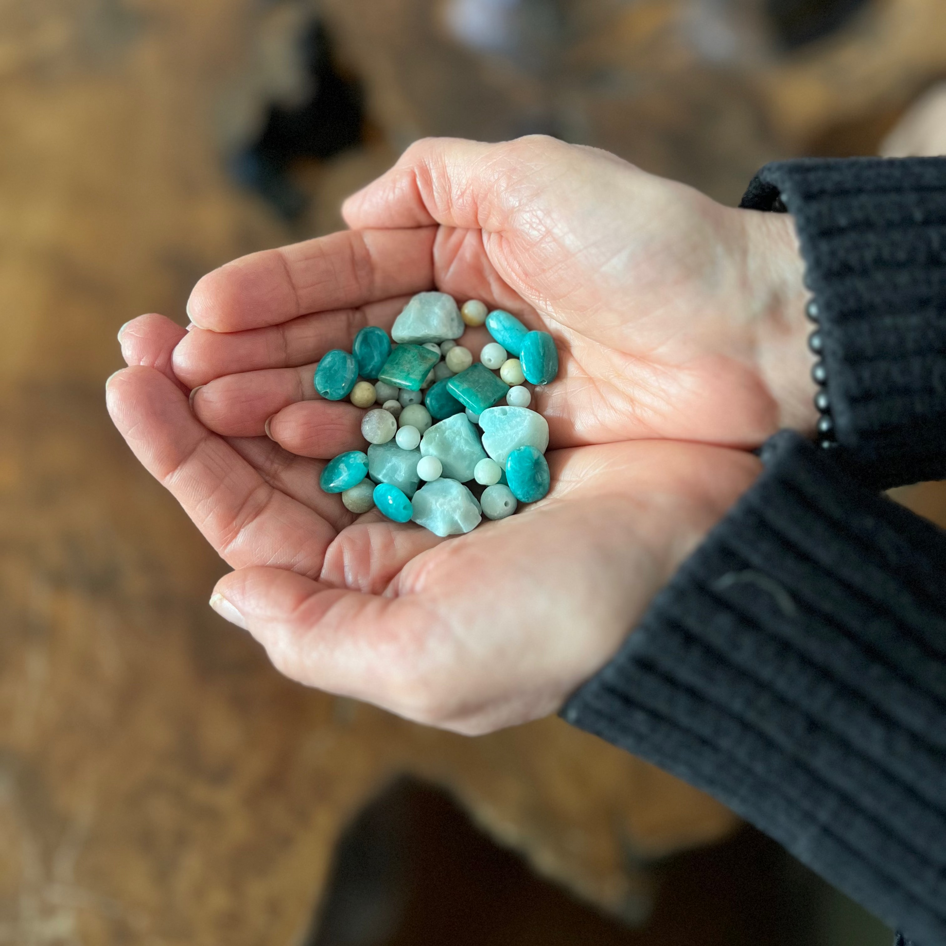 Combining the flowing & restorative crystals of Moonstone, Chrysocolla, Amazonite & Aquamarine this blend embodies the soothing rhythm of water. Nurturing emotional healing, it deepens intuition & invites calm self-expression. These stones open the heart & encourage compassion, trust & inner peace.
