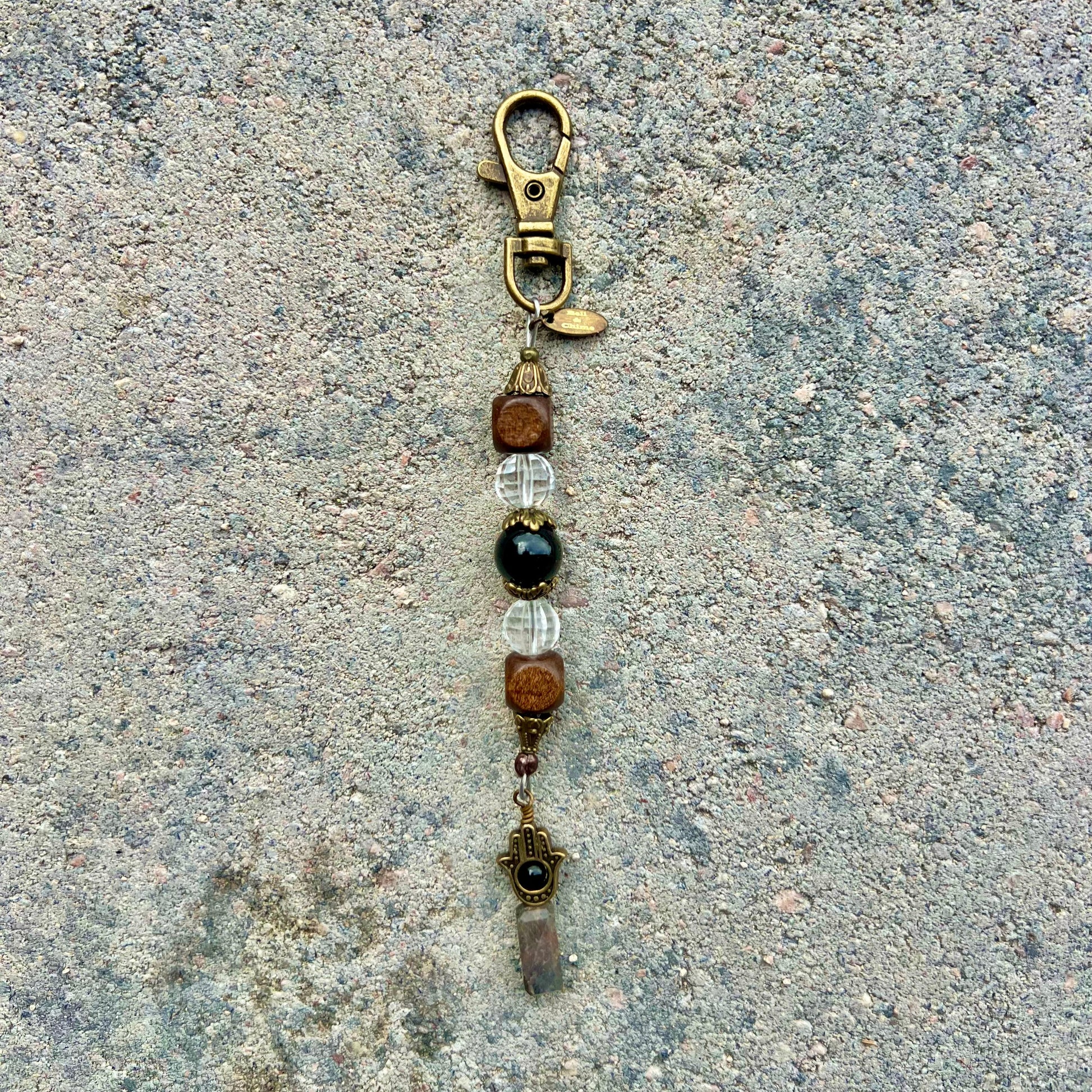 A powerful protective combination. Black Tourmaline provides grounding & energetic protection, Tourmalinated Quartz purifies & balances light and shadow & Clear Quartz amplifies intentions & harmonizes energy. Together, they support clarity, protection & alignment of mind, body & spirit. The Hamsa hand wards off negative energy while inviting blessings & harmony.